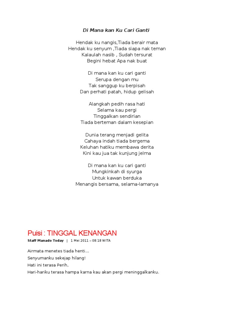 Lirik Lagu Di Mana Kan Ku Cari Ganti Pdf